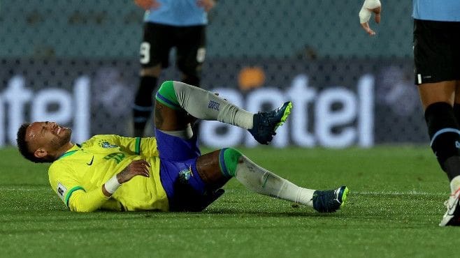 Neymar sofreu uma ruptura do ligamento cruzado anterior (LCA) e do menisco do joelho esquerdo logo após o Brasil levar o primeiro gol do Uruguai, em jogo pelas Eliminatórias da Copa do Mundo de 2026, nesta terça-feira (17), em Montevidéu.