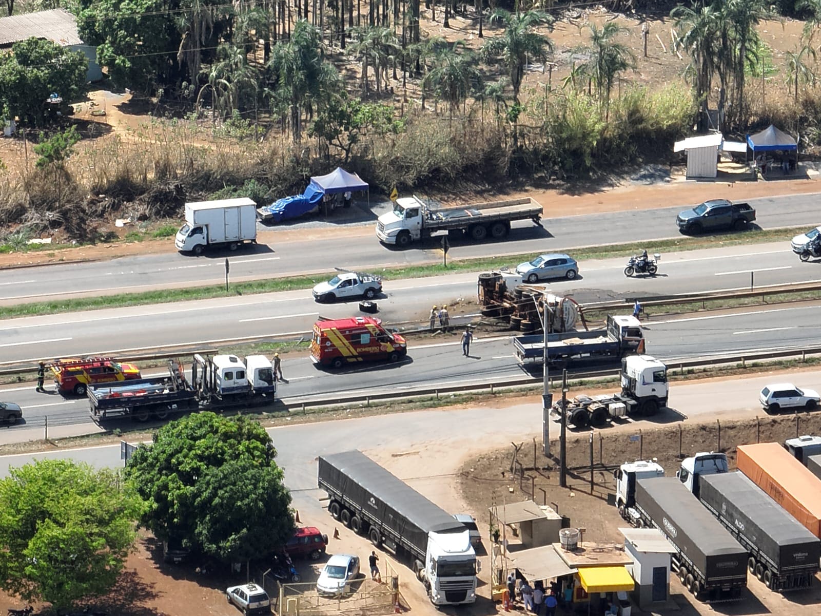 Um caminhão tombou na BR 060 no sentido Anápolis para Goiânia na manhã desta quinta-feira (19), bairro Eldorado, em frente ao Atacadão Rio Vermelho, o trecho que já conhecido pelo trânsito intenso, ficou temporariamente interditado no local do acidente.