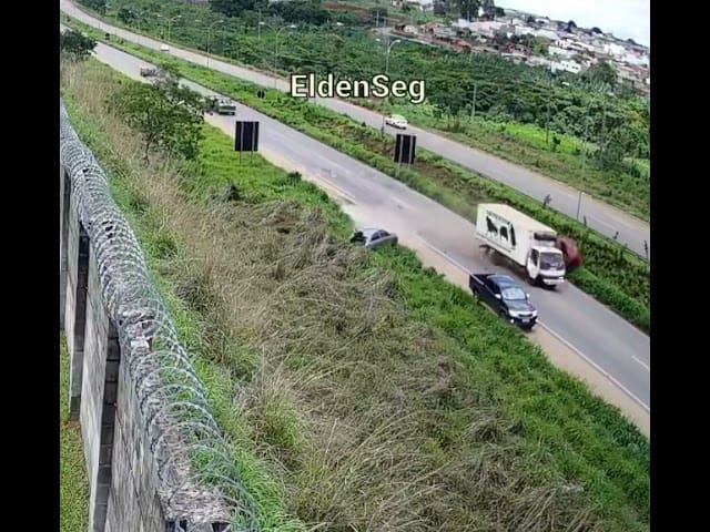 A PRF teve acesso às câmeras de segurança de um condomínio localizado às margens da rodovia e, pelas imagens, é possível ver que o caminhão seguia pela rodovia em velocidade incompatível, aparentemente já desgovernado, quando os dois carros de passeio que seguiam à frente, um VW Gol e um GM Celta, reduziram a velocidade em uma lombada e o caminhão colidiu contra ambos, jogando-os para fora da pista. Um dos veículos capota e para com os pneus virados pra cima.