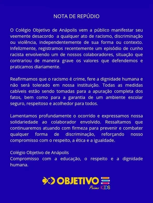 Após encontrar o bilhete, Almiro pediu demissão e, incentivado pelos familiares, denunciou o ocorrido para evitar que o autor repita o crime contra outros trabalhadores negros. O caso será encaminhado à delegacia especializada em crimes de racismo, em Goiânia.